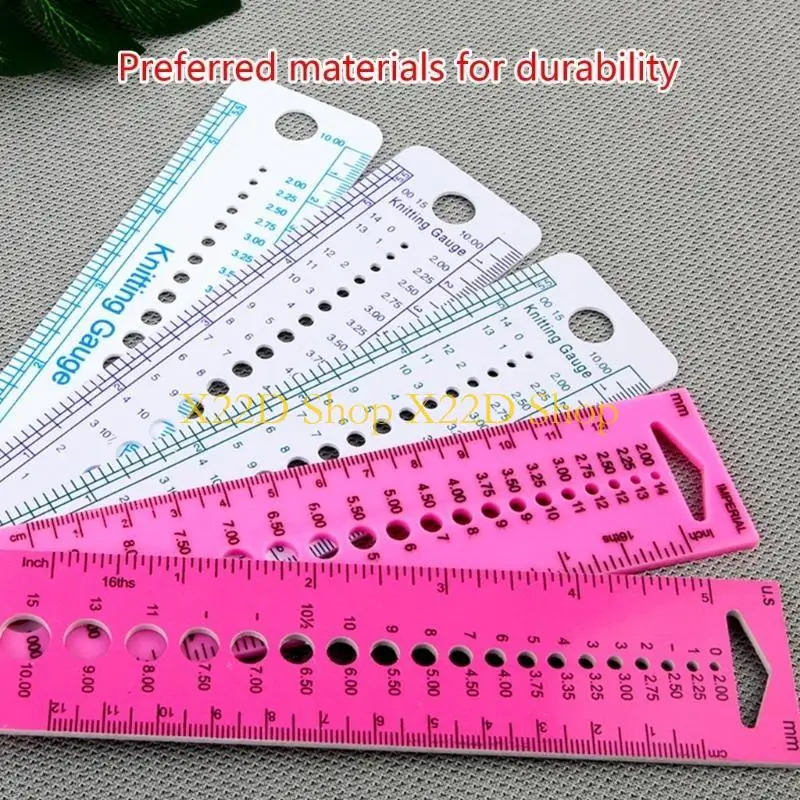 The knitting needle size ruler is lightweight, convenient, and so useful for non-imprinted needle! This multi-functional knitting needle gauge ruler is handy and necessary addition to your knitting notion.