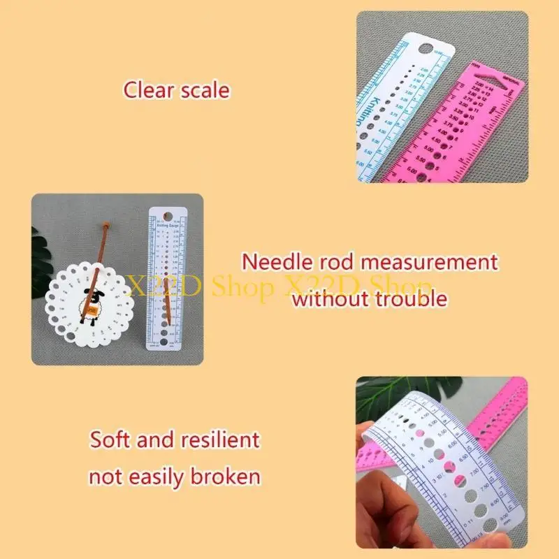 The knitting needle gauge ruler is made from durable and flexible plastic material. The knitting needle measuring tool can tell you what gauge hook or needle you have.